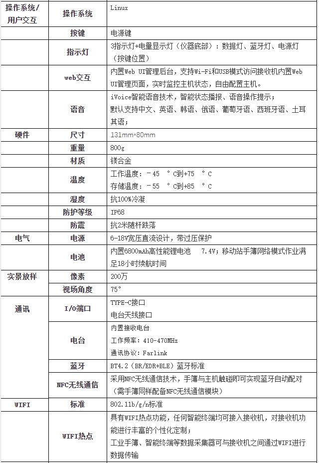 內置6800mAh高性能鋰電池,移動站手簿模式18小時超長續航,Type-C+PD極速閃充, 支持充電寶供電方案,滿足更高強度作業需求。
